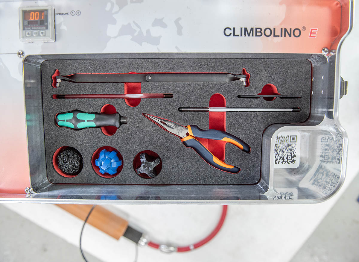 Powered by two 56v batteries, the Climbolino E is a low noise emission cutter, allowing it to be used in residential areas and other noise-sensitive locations. This, alongside its compact and quick-to-assemble design, makes it a particularly useful solution for professionals operating predominantly in urban areas.